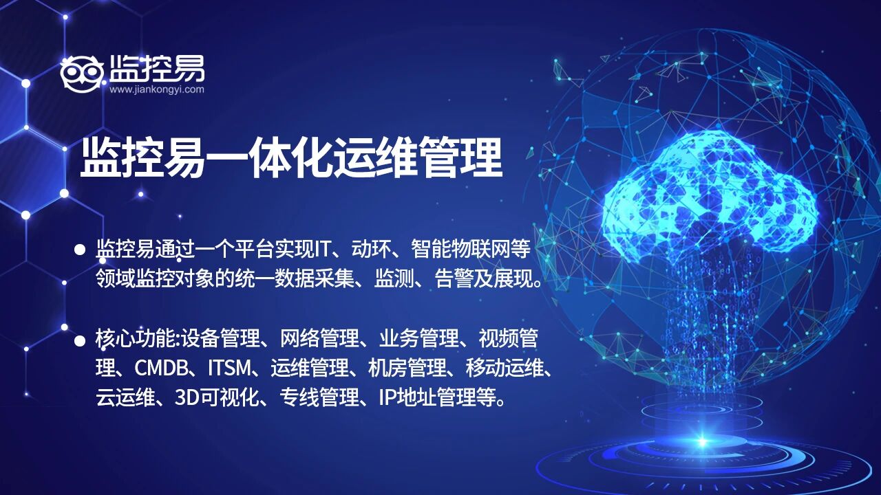在金融数字化转型的浪潮中,位于华北地区的一家大型财务公司,作为服务集团资金管理以及金融服务的核心机构,其IT 系统承担着账户管理、资金结算、风险控制等一系列关键业务,系统的稳定性以及数据的安全性,直接对集团资金安全以及业务连续性产生影响,随着 IT 基础设施规模不断扩大,服务器、网络设备、安全设备、数据库等各类资源呈现出分布式部署的状态,传统的运维模式面临“数据孤岛”“故障定位险阻”“业务联动薄弱”等诸多痛点。监控易一体化运维监控平台的落地实施,为这家公司构建起了一套“全栈可视、智能预警、业务协同”的运维新体系,使其成为金融行业 IT 运维数字化升级的典型范例。