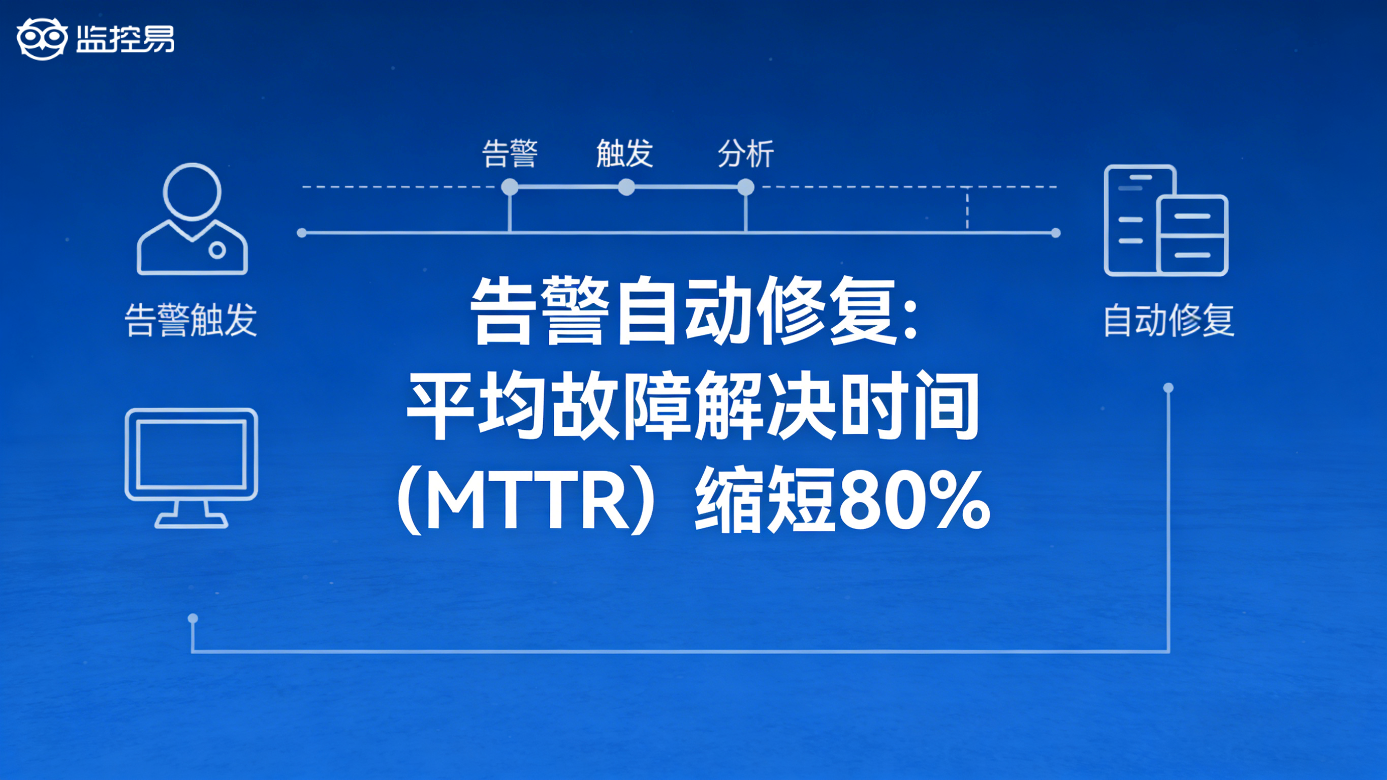 再举个例子,有计划“提升故障自愈能力”,此时可依据监控易的自动化运维模块能力,去设计几个有高频率特点、可自动处理的故障场景,将计划设定为:“达成5类常见高频告警的自动化处置闭环,把人工干预的次数减少80%,”。
