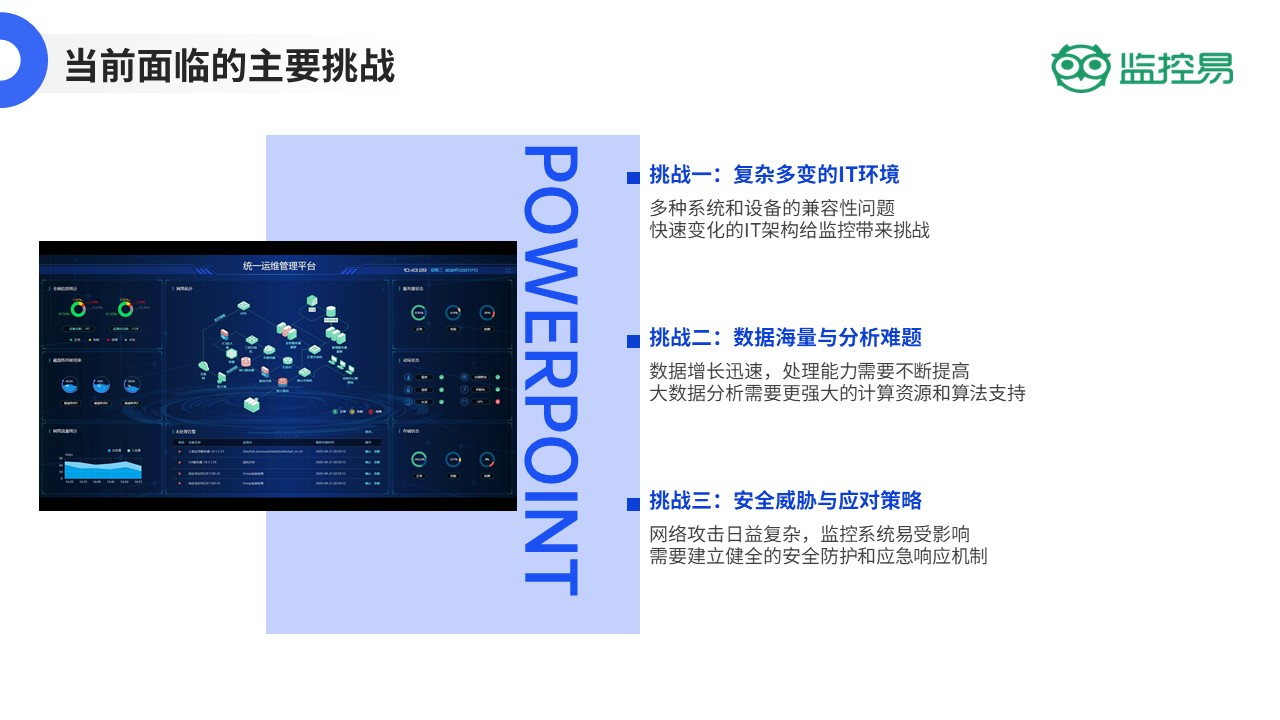 运用监控易一体化监控平台,借助技术整合来对冲并优化这些隐性成本。以“一份资金、一个平台、一个团队”,管理好“一切事务”。并非单纯的界面拼接,该平台助力您打通从数据采集、传输、存储直至分析展现的全栈流程,达成了三大“统一”: