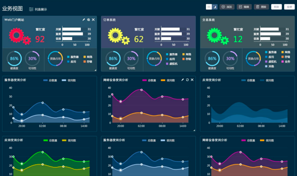 监控易BSM凭借高效的海量监控能力以及分布式部署、集中管控的特性,更强调业务模块间的互联和协作,透过业务的服务水平来监控IT、运营IT、规划IT。通过监控易的高性能监控,可以把全业务链整合到一个视图中,并且与业务所对应的IT基础设施动态关联,实时显示出业务的服务能力、健康状态和可用性,为业务管理和IT运营提供及时准确的数据依据。